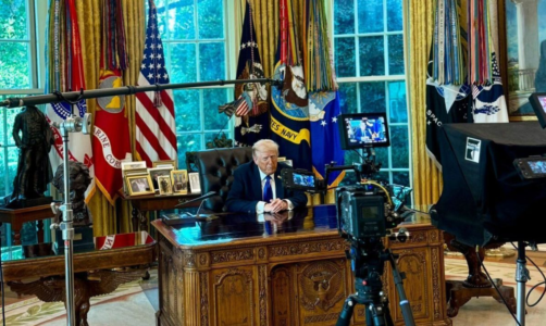 “Nos bastidores do Salão Oval: o presidente Trump responde ao aceite do seu plano de paz pelo Hamas. Fique ligado!” Karoline Leavitt escreveu na legenda de uma foto de Trump, com equipamento de câmera e um teleprompter posicionado à sua frente.