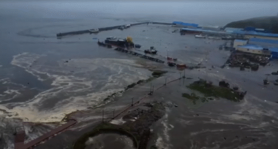Na Rússia, o distrito de Severo-Kurilsk, no extremo sul da península de Kamchatka, declarou estado de emergência após a chegada de várias ondas que arrastaram contêineres e embarcações.