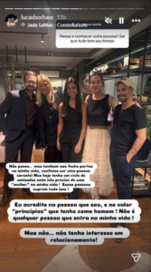 Ele também ressaltou que valoriza seus princípios e que é seletivo em relação às pessoas que se aproximam. “Acredito na pessoa que sou, e no valor ‘princípios’ que tenho como homem! Não é qualquer pessoa que entra na minha vida!”. Em seguida, reforçou: “Mas não… não tenho interesse em relacionamento!”.