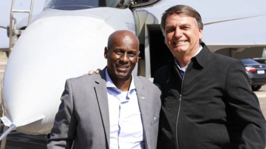 Ailton Gonçalves Moraes Barros junto do ex-presidente Jair Bolsonaro (PL) • Reprodução/Redes Sociais