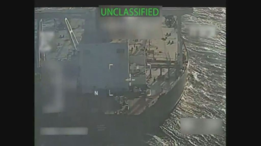 Petroleiro apreendido pelos EUA em 10 de dezembro • Reprodução CNN BrasilNo dia 10 de dezembro, os EUA apreenderam um grande petroleiro chamado Skipper, que era alvo de sanções pelas suas ligações com o Irã.