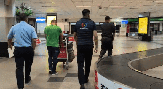Imagens mostram o ex-diretor-geral da PRF (Polícia Rodoviária Federal) Silvinei Vasques sendo abordado por agentes de segurança no Aeroporto Internacional Silvio Pettirossi, em Assunção, no Paraguai.