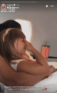 “Pegamos uma turbulência pesada e minha mãe começou a orar”, contou nas redes sociais. Virginia também disse que a filha mais velha, Maria Alice, de 4 anos, acompanhou a avó na oração.