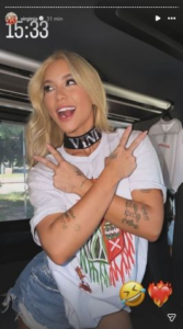 Virginia Fonseca, 26, brincou com os seus amigos ao vestir um acessório no pescoço escrito “Vini Jr” na tarde desta segunda (16). A influenciadora registou o momento nos stories do Instagram.